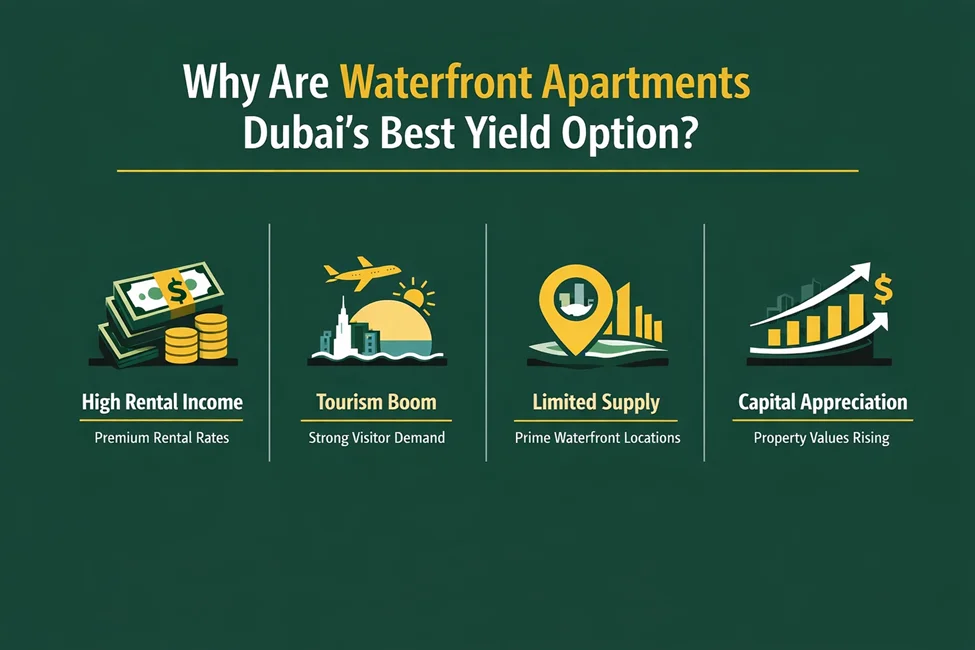 Dubai villas are the top pick for long-term wealth in 2026. Limited supply and strong demand drive land value up. Penthouses work as high-status trophy assets. They bring prestige but also more risk, and exit timing matters far more. Waterfront apartments give you the best liquidity and the steadiest rental income, powered by Dubai’s short-term luxury rental market.